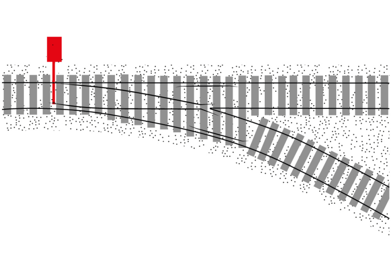 Ainsi, en actionnant la tirette l'aiguillage présente soit la position directe...